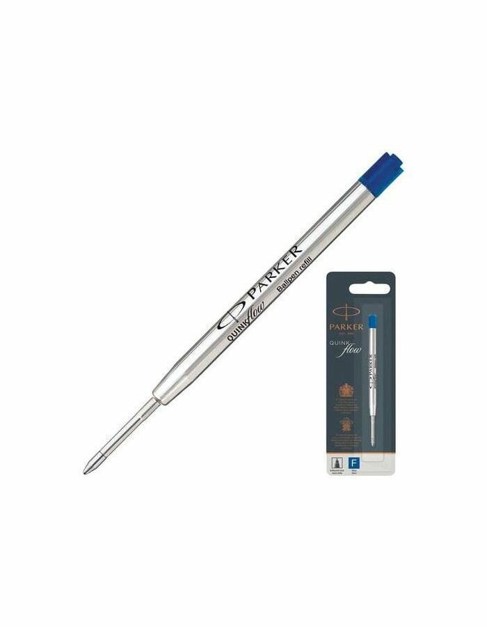 Купить Стержень шариковый PARKER "Quinkflow", металлический, 98 мм, узел 0,8 мм, блистер, синий, 1950368