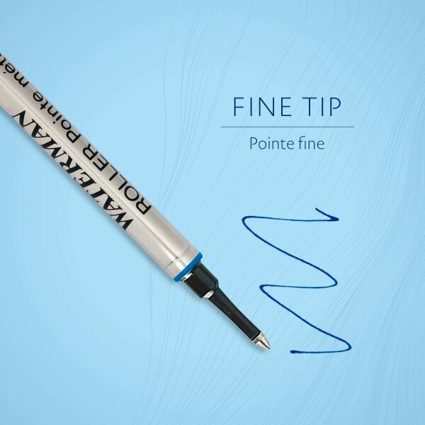 Комплект 2 шт, Стержень для роллера Waterman синий, 0.8мм, метал. корпус, блистер