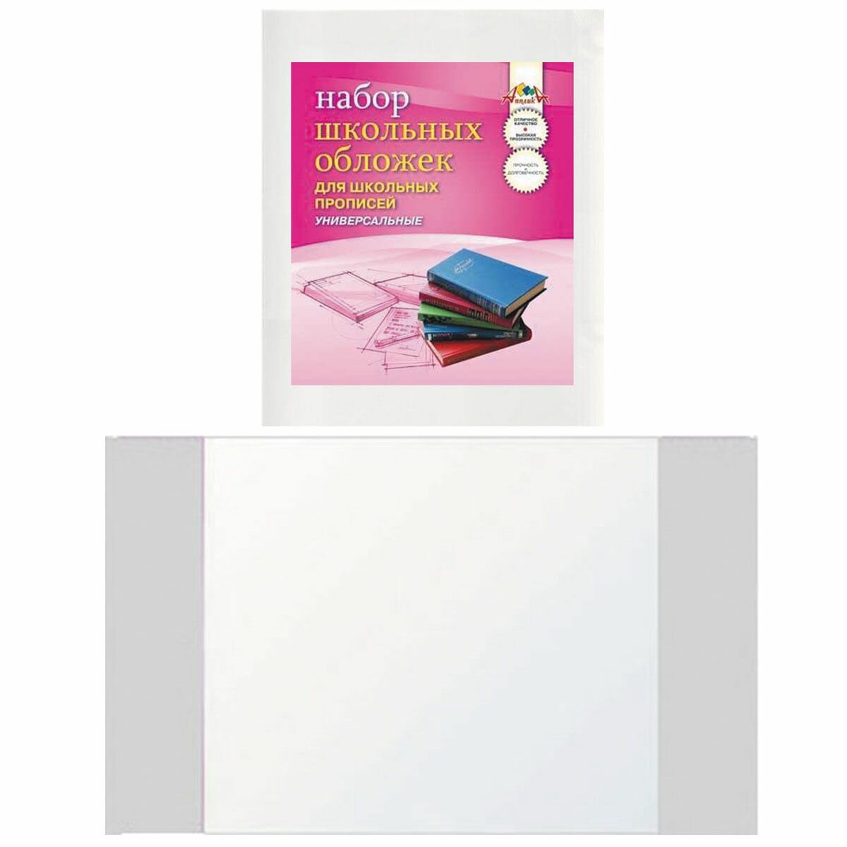 Купить Обложка для прописей, универсальная, ПВХ, 243*455 мм, 110 мкм, 5 шт, закладка, цвет прозрачный Апплика