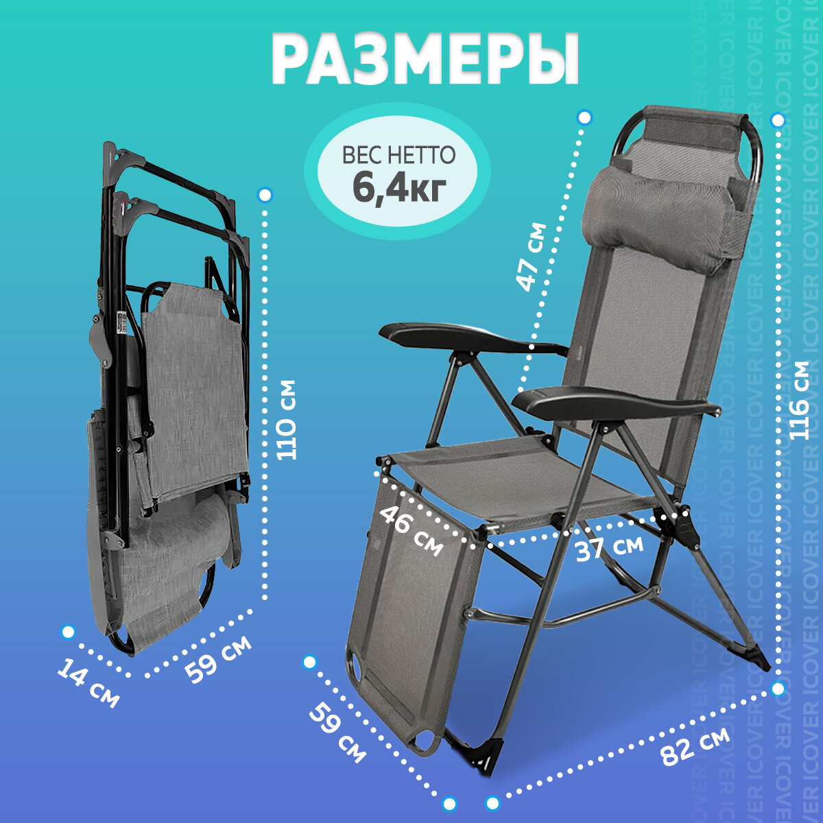 СохранитьКресло-шезлонг складное Ника серое 820х590х1160 мм с подножкой (К3/ГР) интересное: