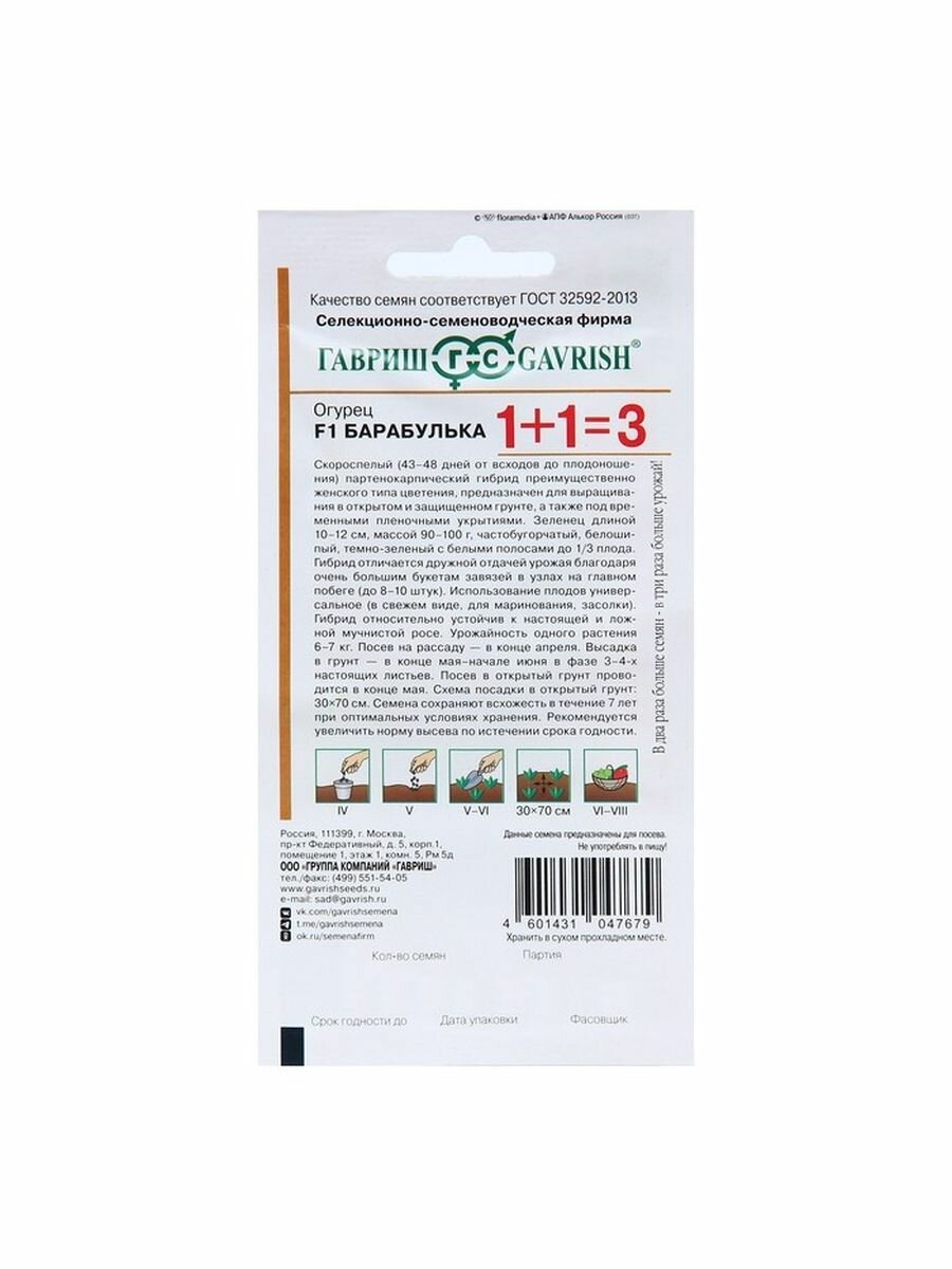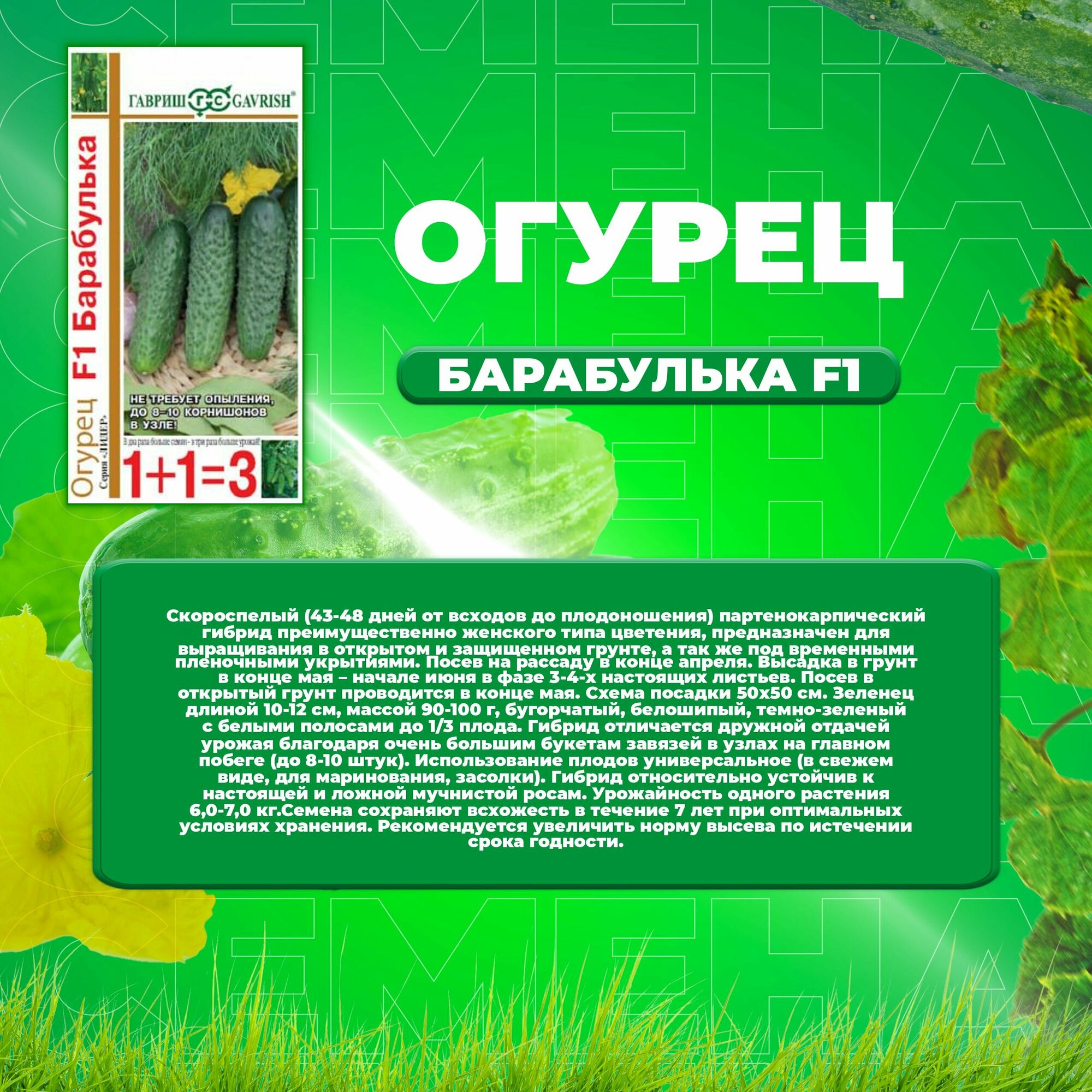 Гавриш Семена огурца "Барабулька F1", 20 шт. интересное: