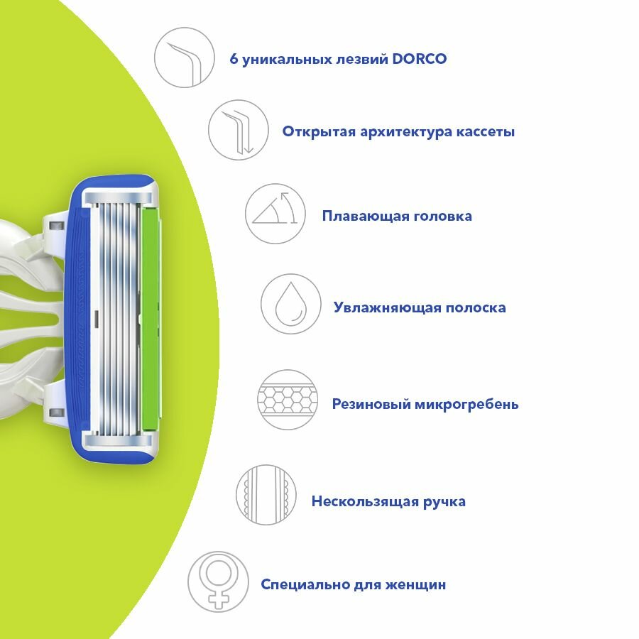 Dorco Станок для бритья Dorco Eve 6 одноразовый жен. интересное: