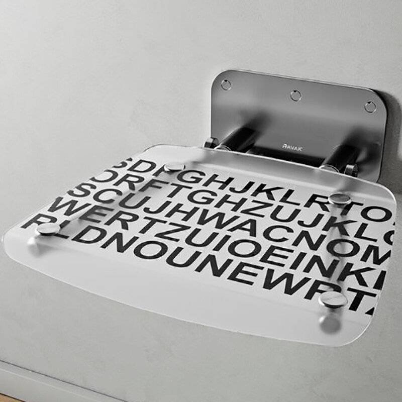 Сиденье для душа Ravak Ovo B II Text B8F0000054 Прозрачно-белое с декором Нержавеющая сталь