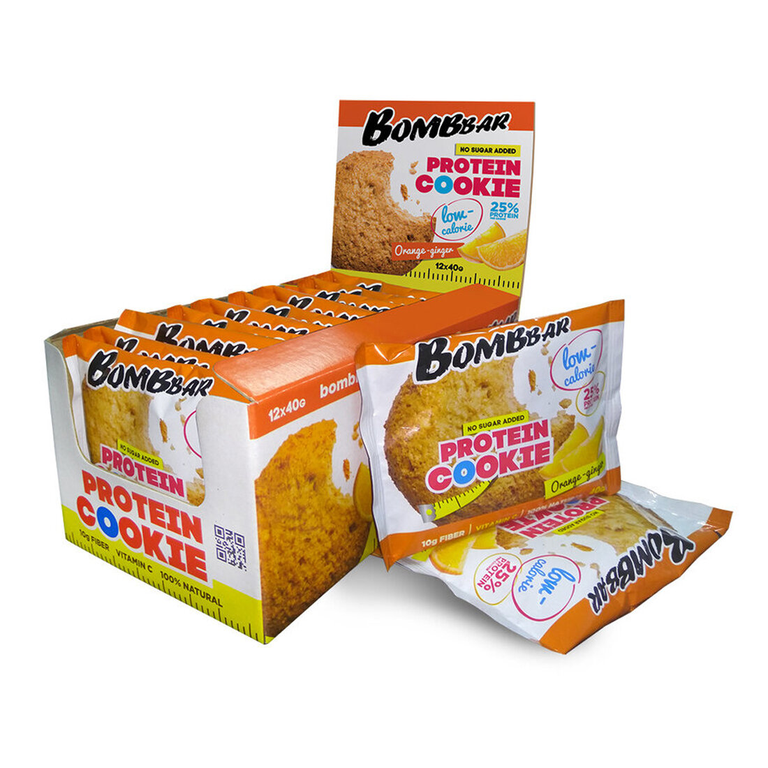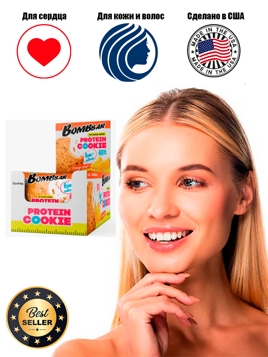 Купить Bombbar Protein Cookie Низкокалорийное протеиновое печенье без сахара низкокалорийное "Апельсин - имбирь", 12шт х 40г
