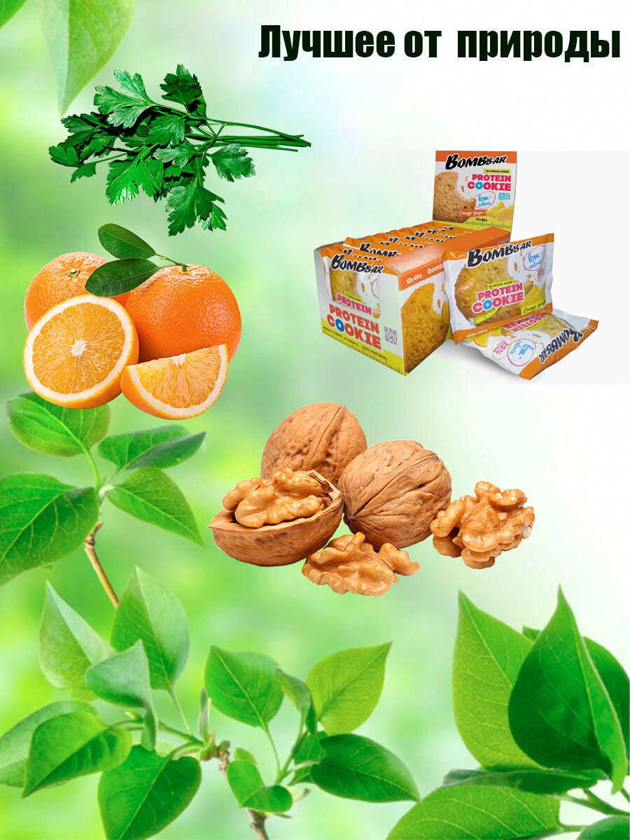 Протеиновое печенье без сахара Bombbar, Апельсин-имбирь, 40г х 12 шт.