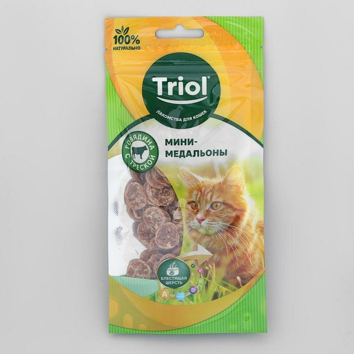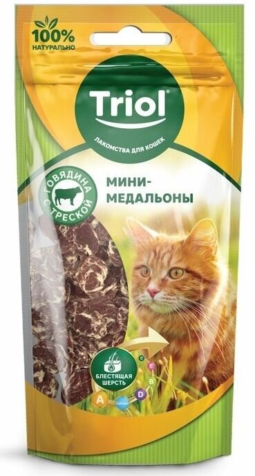 Лакомство для кошек Triol Мини-медальоны из говядины с треской, 40г интересное: