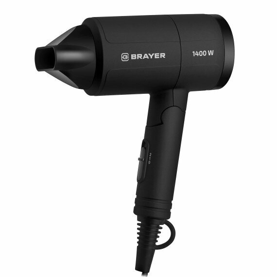 Фен для волос Brayer 1400 вт, 2 скорости, 1 температурный режим, складная ручка, черный (BR3040)