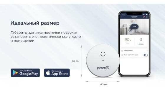 Беспроводной датчик протечки Perenio интересное: