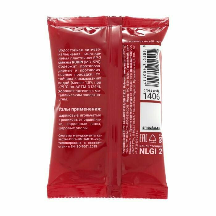 Смазка литиево-кальциевая многофункциональная МС-1520 RUBIN EP2, 400г стик-пакеты Al ВМПАВТО 1409
