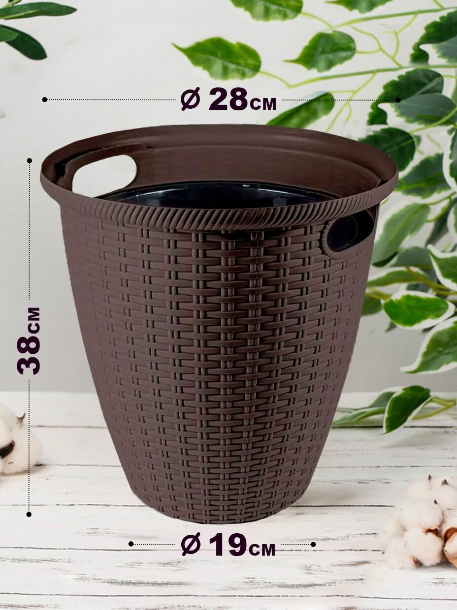 Кашпо напольное Ротанг 30 л, с внутренним горшком 16 л, горький шоколад