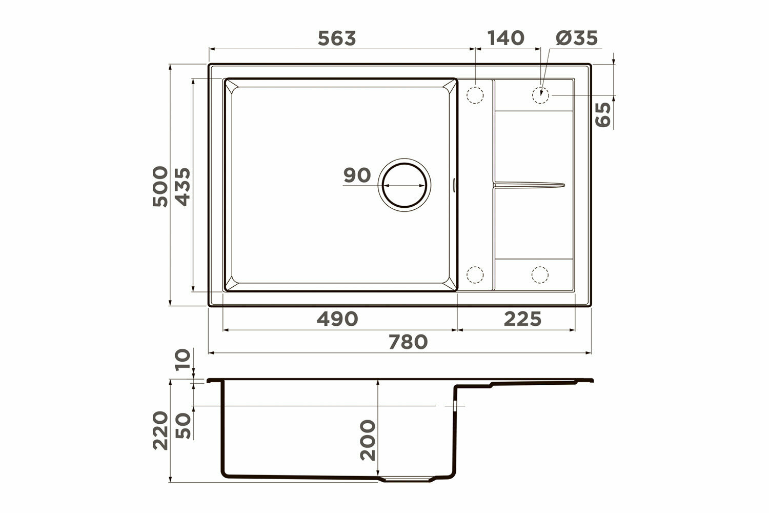 Врезная кухонная мойка LEX Maury 510