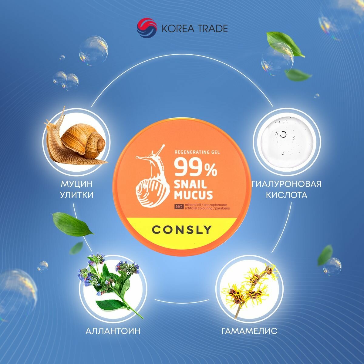 Consly snail mucus 99% восстанавливающий многофункциональный гель с муцином улитки, 300 мл