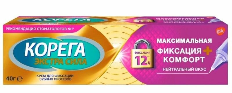 Корега Экстра сила "Максимальная фиксация + Комфорт" Крем для фиксации зубных протезов, 40г