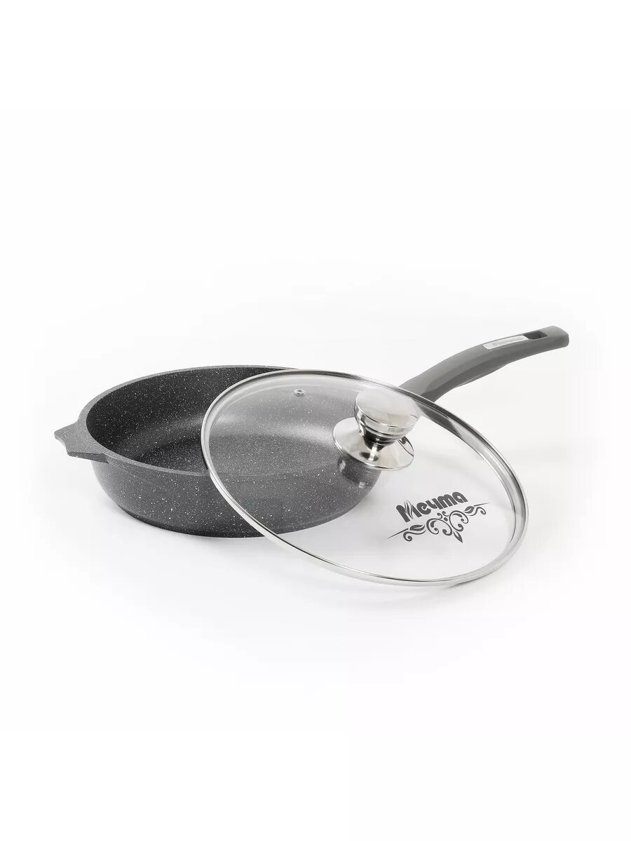 мечта с26802 гранит black 26см с несъемной ручкой и стекл. крышкой сковорода