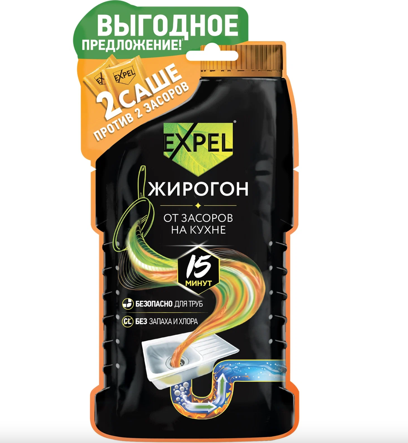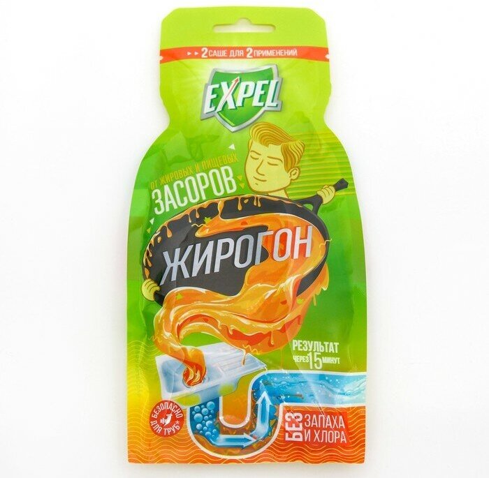 Купить Expel Средство для устранения засоров от жира и пищевых остатков Жирогон внутри 2 саше по 50 г