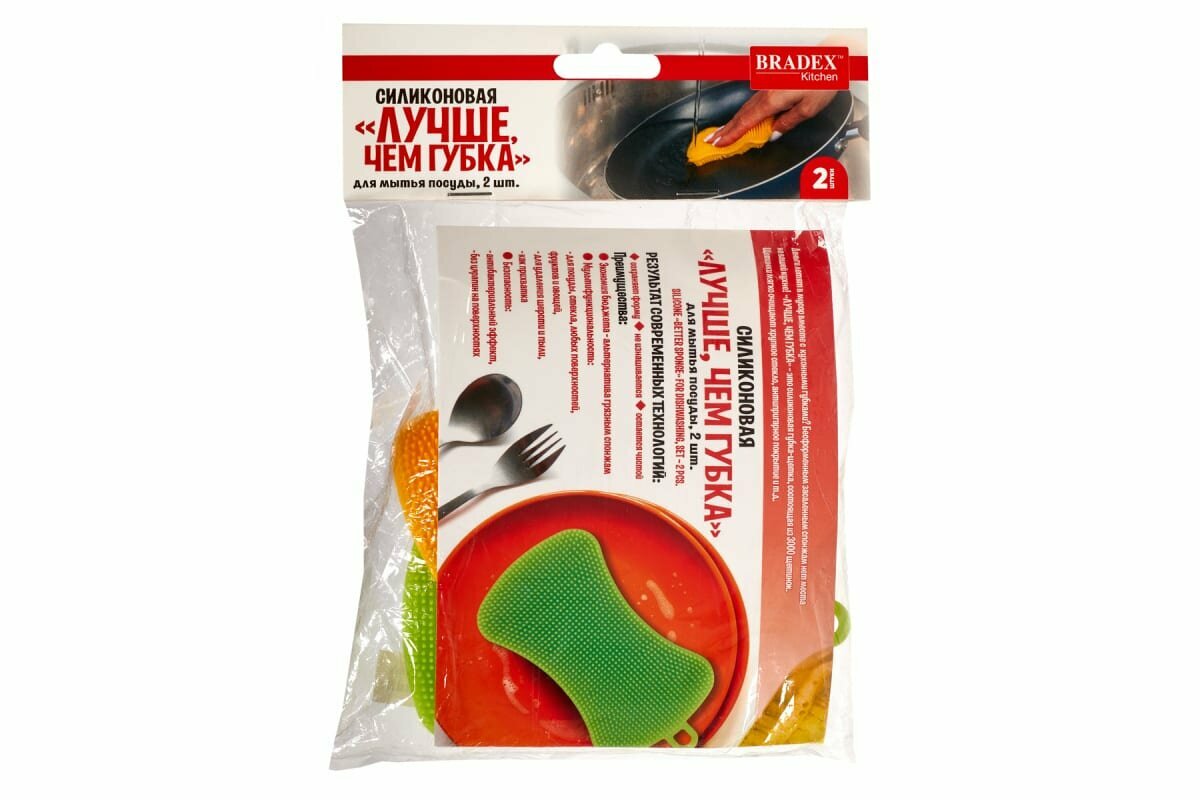 Набор губок для посуды Bradex лучше, ЧЕМ Губка 2 шт, зеленый, желтый .