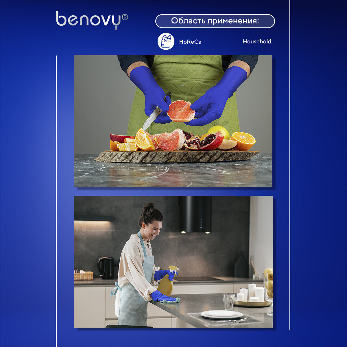 Перчатки латексные Benovy смотровые High Risk 25 пар (50 шт.), неопудренные, повышенной прочности, размер M (средний), синие, -