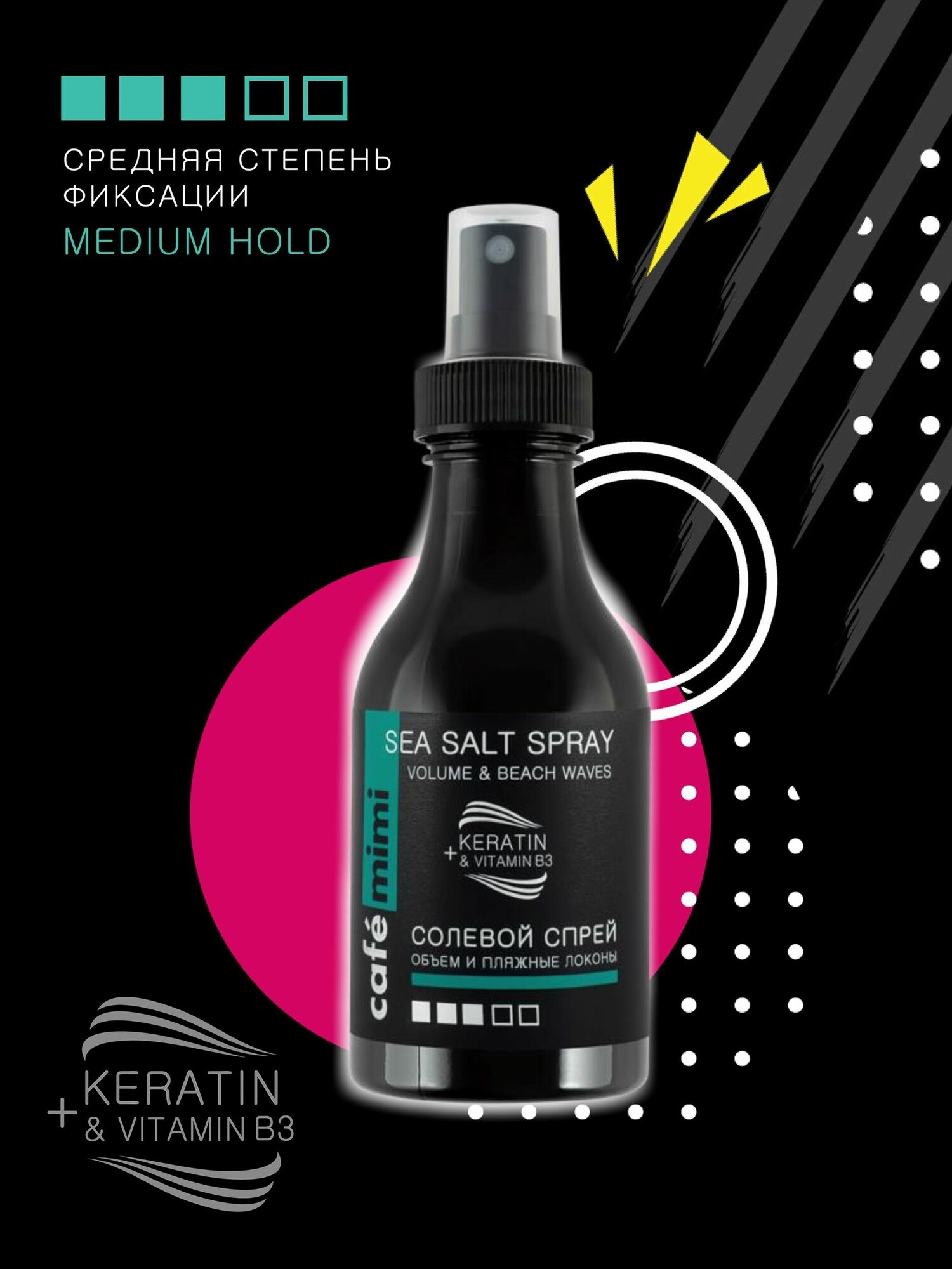 Cafe mimi Солевой спрей для укладки волос Объем и пляжные локоны, средняя фиксация, 150 мл