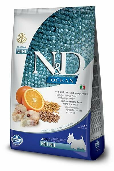 Сухой корм для собак Farmina N&D Ocean, треска, c апельсином, с овсом, со спельтой 2.5 кг (для мелких пород)