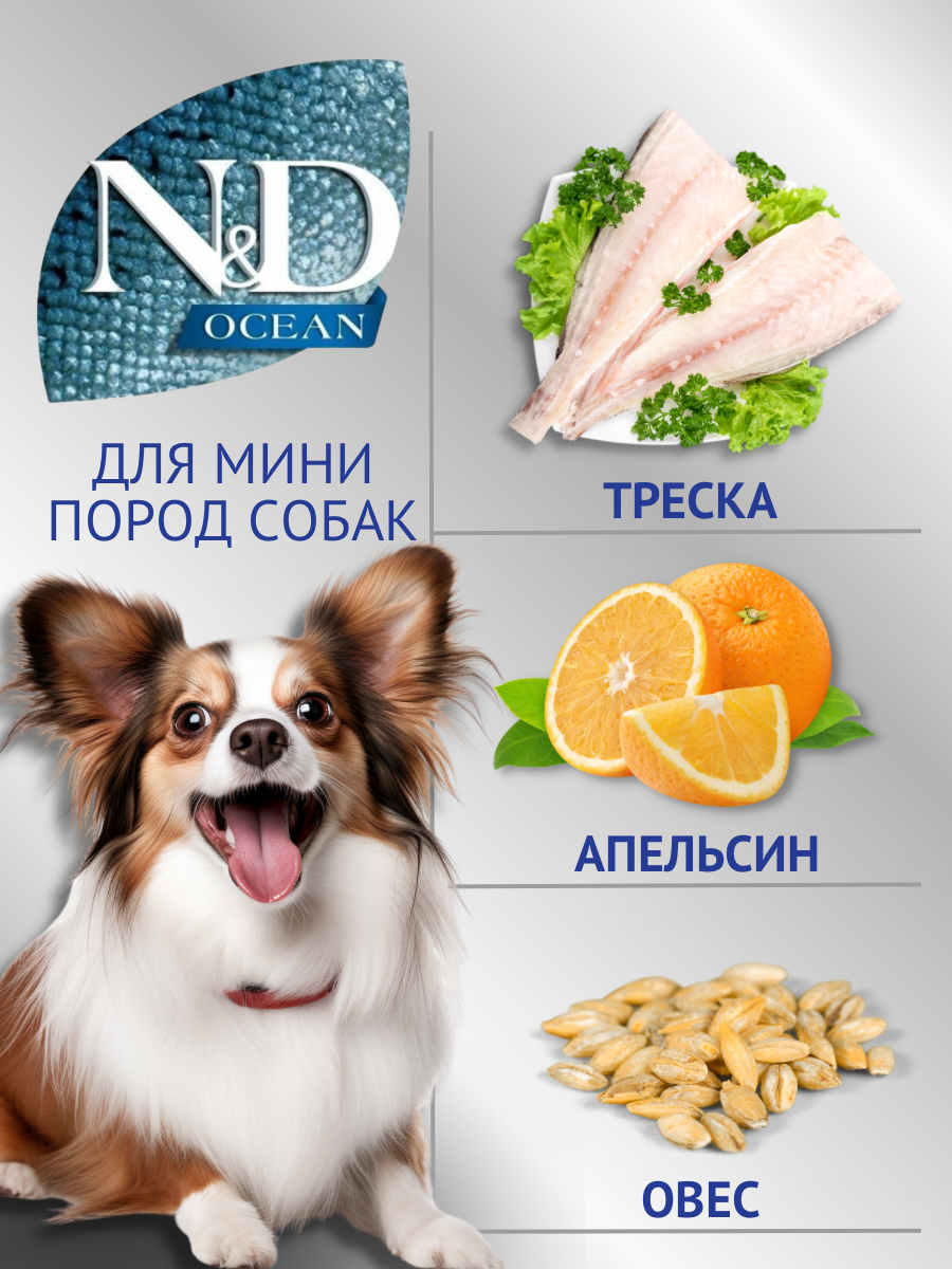 Farmina N&D Ocean корм для собак средних и крупных пород пород, низкозерновой, с треской и апельсином, 2,5кг