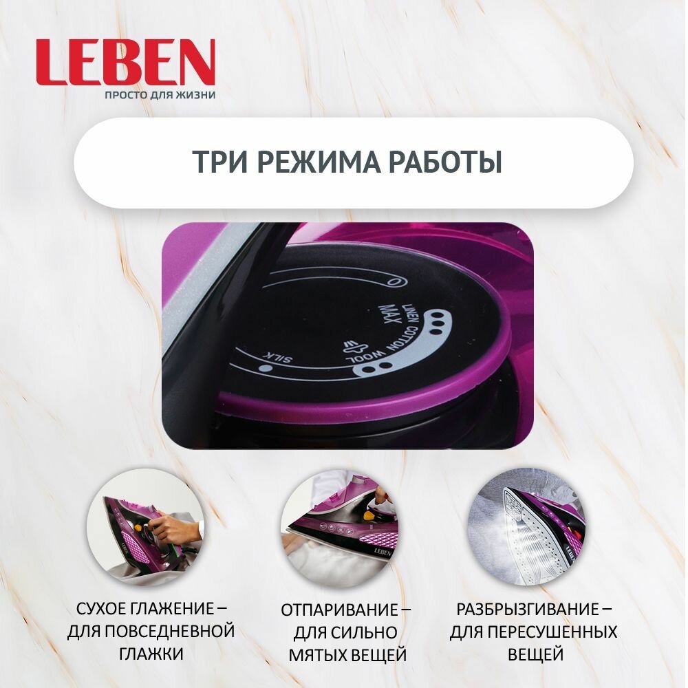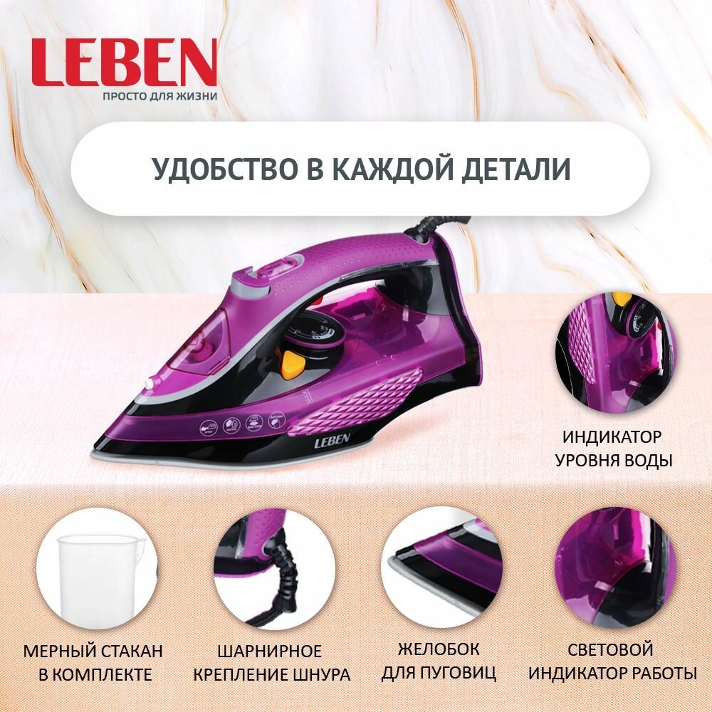 LEBEN Утюг с отпаривателем 2200 Вт, подошва - керамическое покрытие, LED интересное: