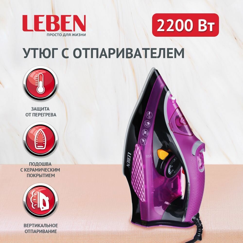 Утюг с отпаривателем 2200 Вт LEBEN, подошва - керамическое покрытие, функция автоотключения, светодиодный индикатор нагрева