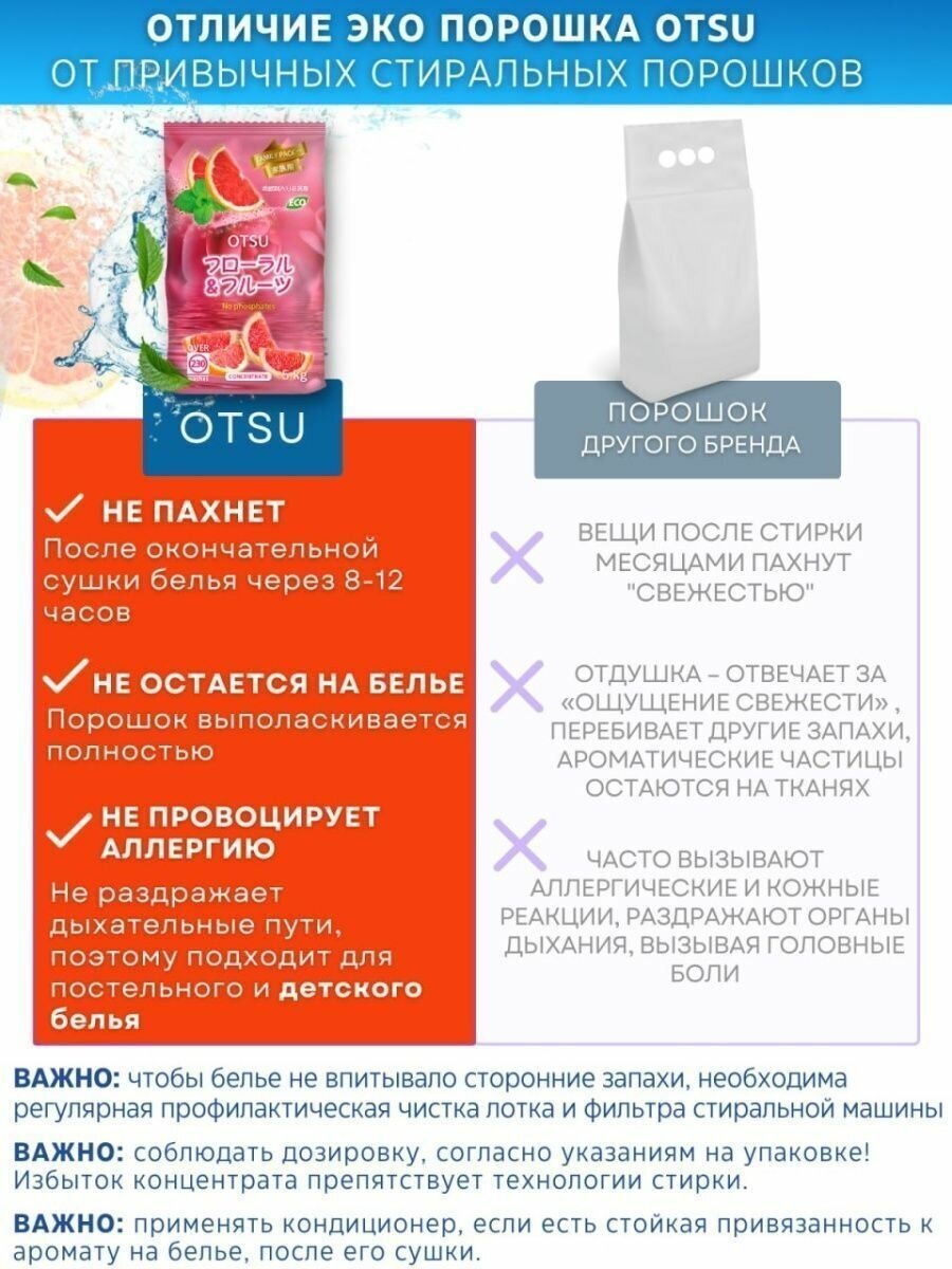 Стиральный порошок Otsu, без фосфатов, с ароматом сочных цитрусовых и цветов, 2,5 кг