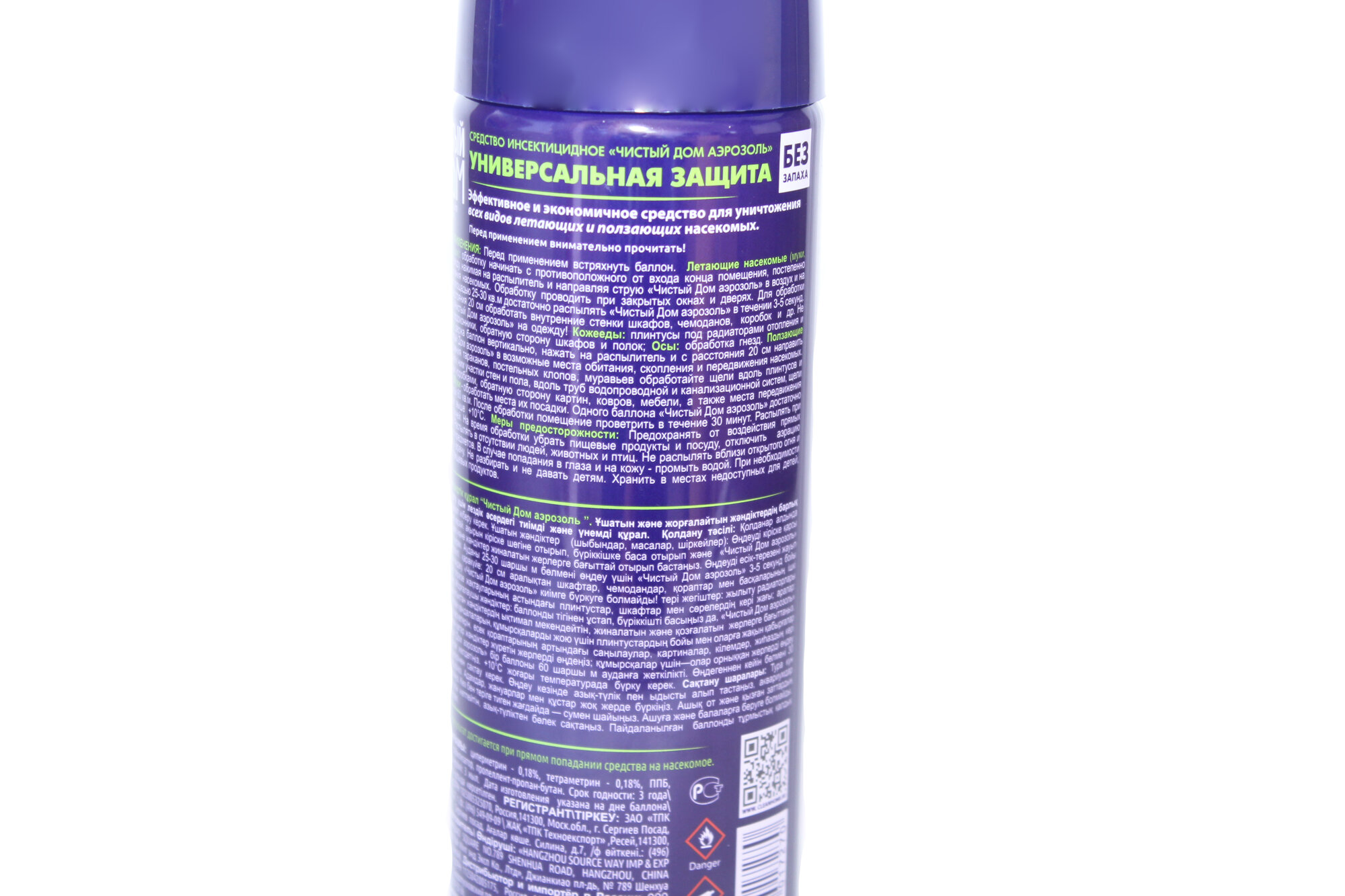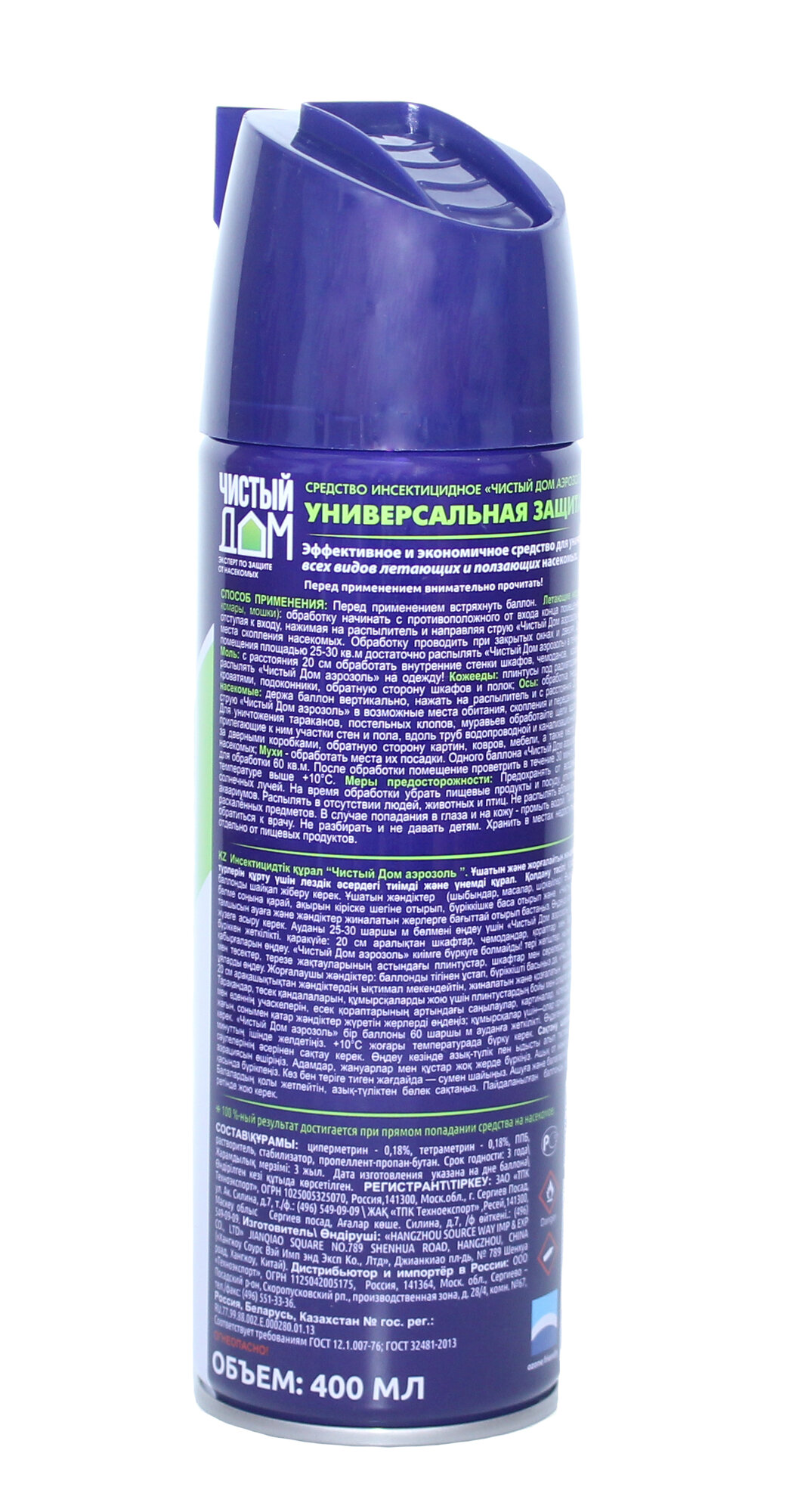 (2 шт.) Аэрозоль Чистый Дом 400мл., трубочка (от летающ. и ползающ.) б/запаха 02-855 (дихлофос) Китай