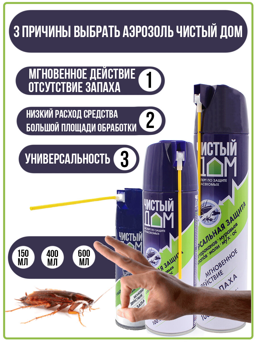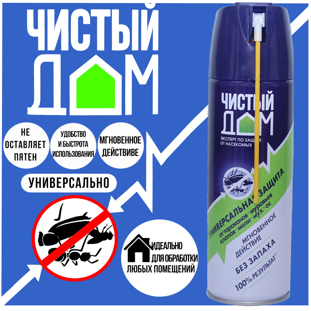 Чистый дом, универсальный аэрозоль от клопов, тараканов, блох, муравьев, мух, ос 600 мл