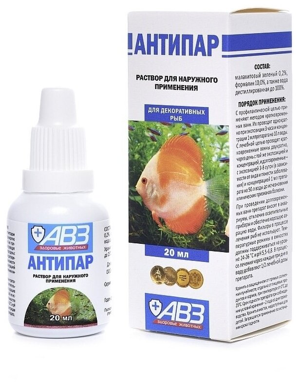 Лекарственный препарат Авз (агроветзащита) для наружной обработки аквариумных рыб,антисептический комбинированный, АВЗ Антипар, 20 мл