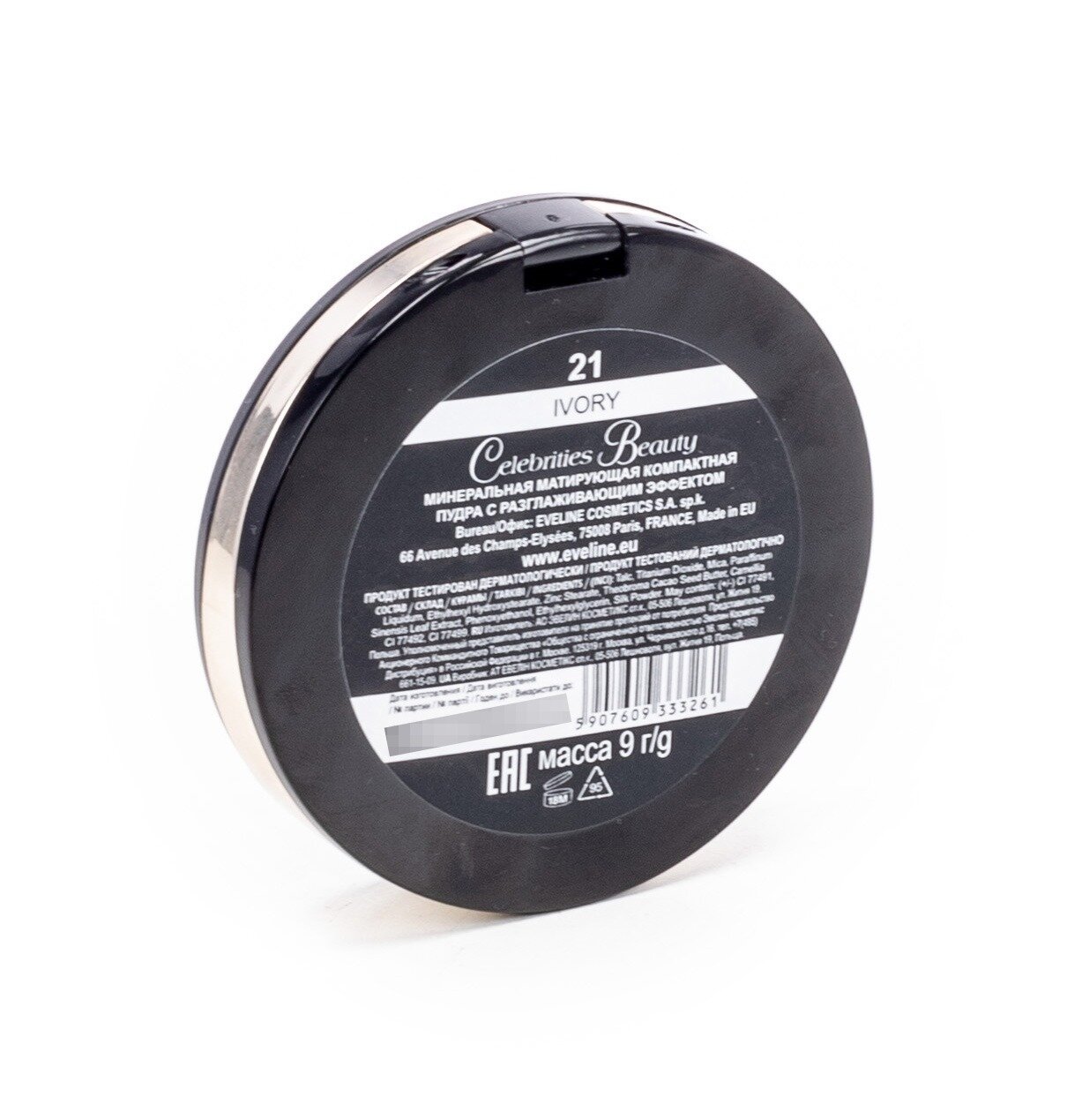 EVELINE Пудра для лица CELEBRITIES BEAUTY минеральная матирующая с разглаживающим эффектом №21 IVORY, 9 гр