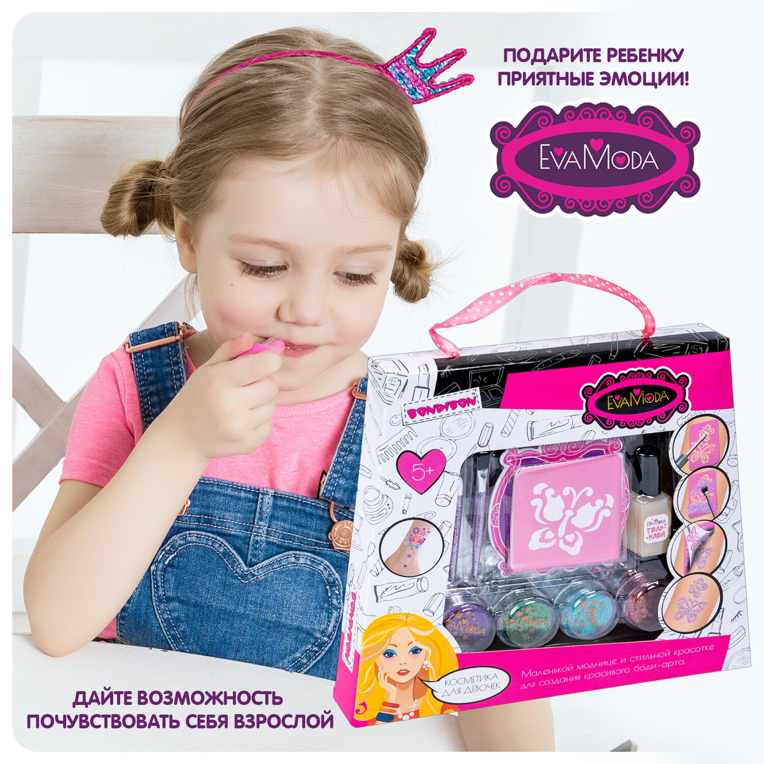 Набор детской декор. косметики Bondibon Eva Moda для боди-арта 5 9,5 ,5 см, глиттер для те