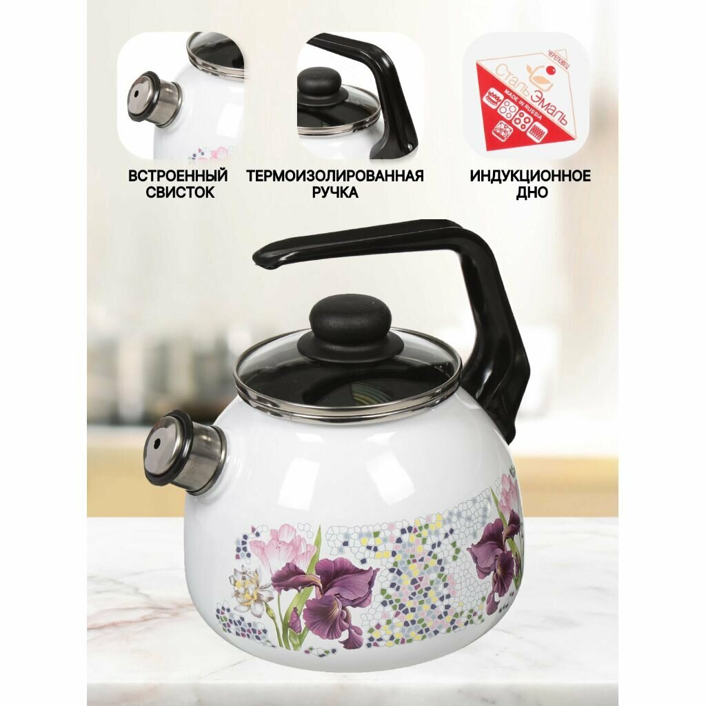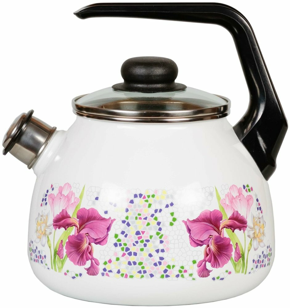 Чайник для плиты со свистком Каллы эмалированный, 3 л