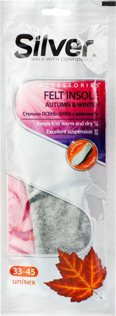Стельки SILVER Осень-зима, с войлоком