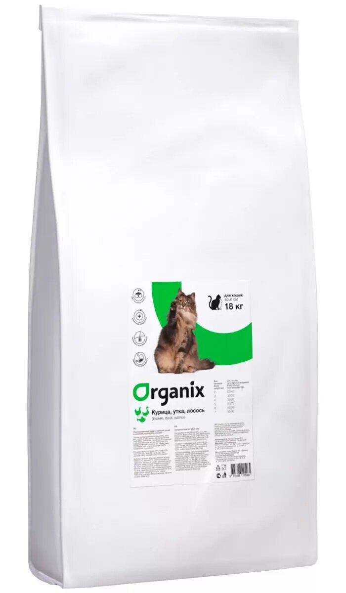 Сухой корм Organix для кошек, курица, утка и лосось, 18 кг