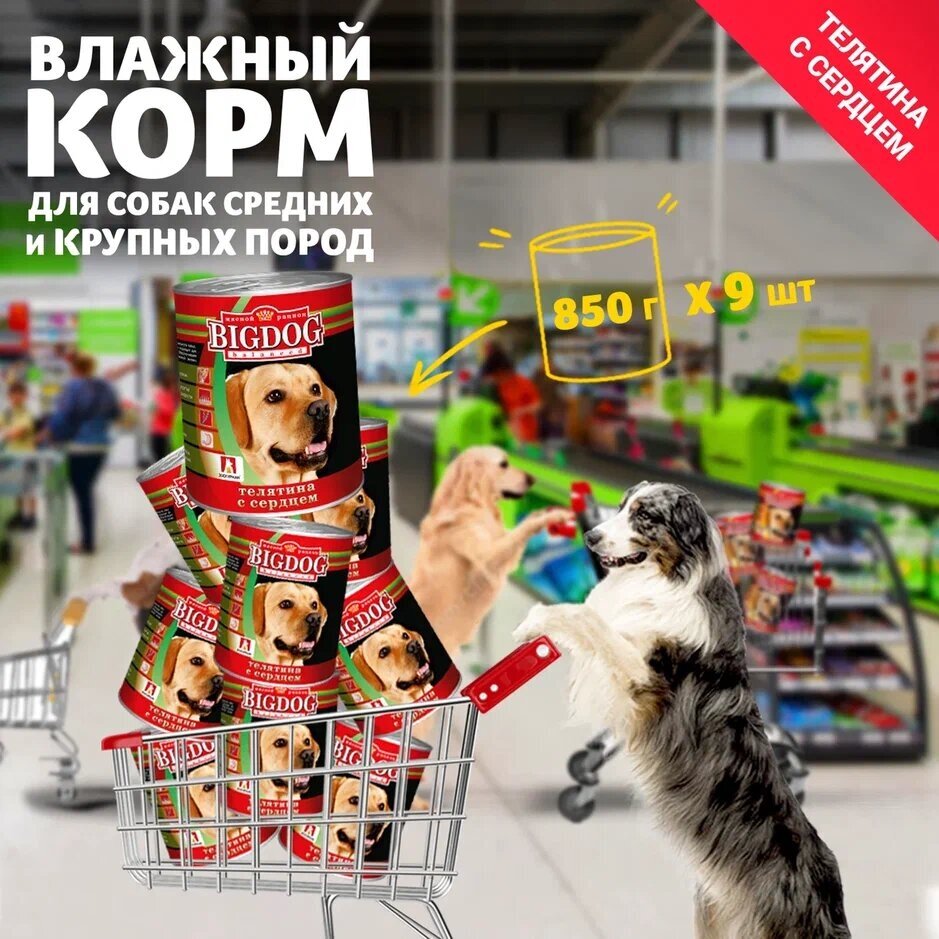 Купить Корм Зоогурман Big Dog (консерв.) для собак, телятина с сердцем, 850 г x 9 шт