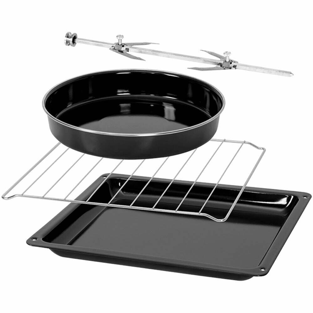 | Плюсы: | Оригинальный ретро дизайн, 2 противня+ решетка+ вертел в комплекте. |