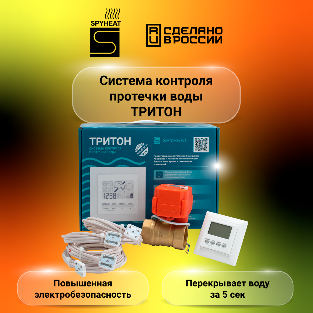 СохранитьСистема контроля протечки воды SPYHEAT тритон 15-001, 1/2 дюйма - 1 кран интересное: