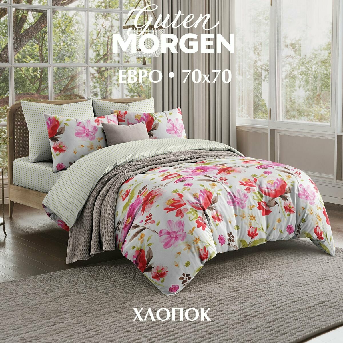 Комплект постельного белья, Евро, Поплин, Guten Morgen, Rebel, наволочки 70х70, 100% хлопок