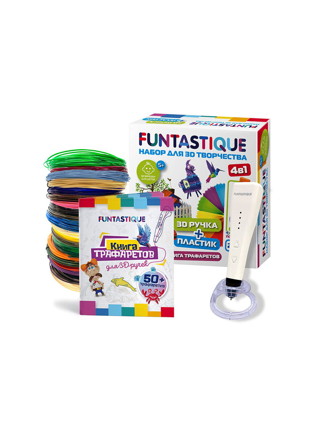 Купить Набор для 3Д творчества 4в1 FUNTASTIQUE 3D-ручка CLEO (Белый) с подставкой+PLA-пластик 20 цветов+Книжка с трафаретами