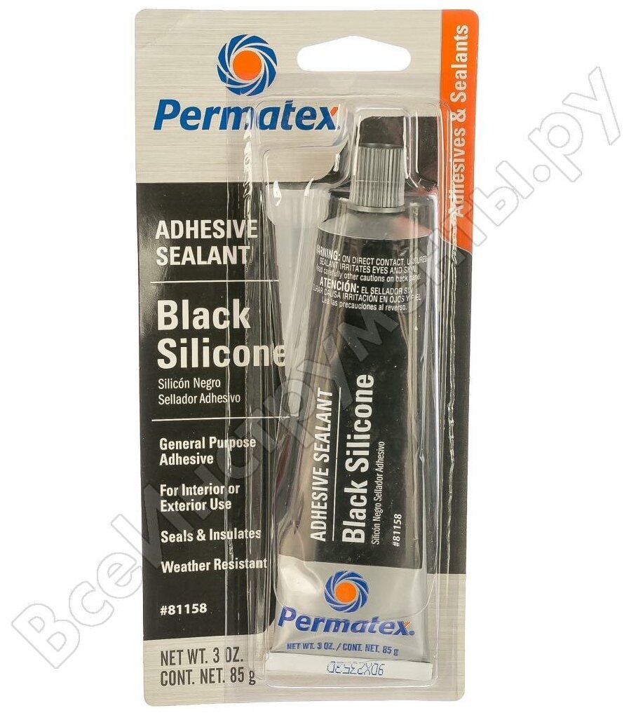 PERMATEX 81158 Герметик черный силиконовый формирователь прокладок и клей-герметик для соединения металла,стекла, дерева, керамики, пластика Black Silicone Adh.Sealant, 85 гр
