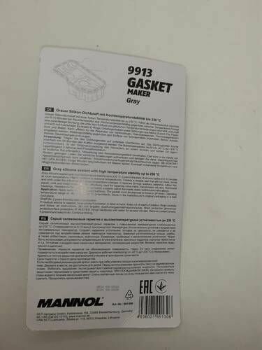 СохранитьГерметик "Mannol " 9913 Gasket Maker Gray (85 Гр) (Силик, Серый, От-40 С До +230 С) Gasket Maker Gray - Это Герметик, Отвержд... интересное: