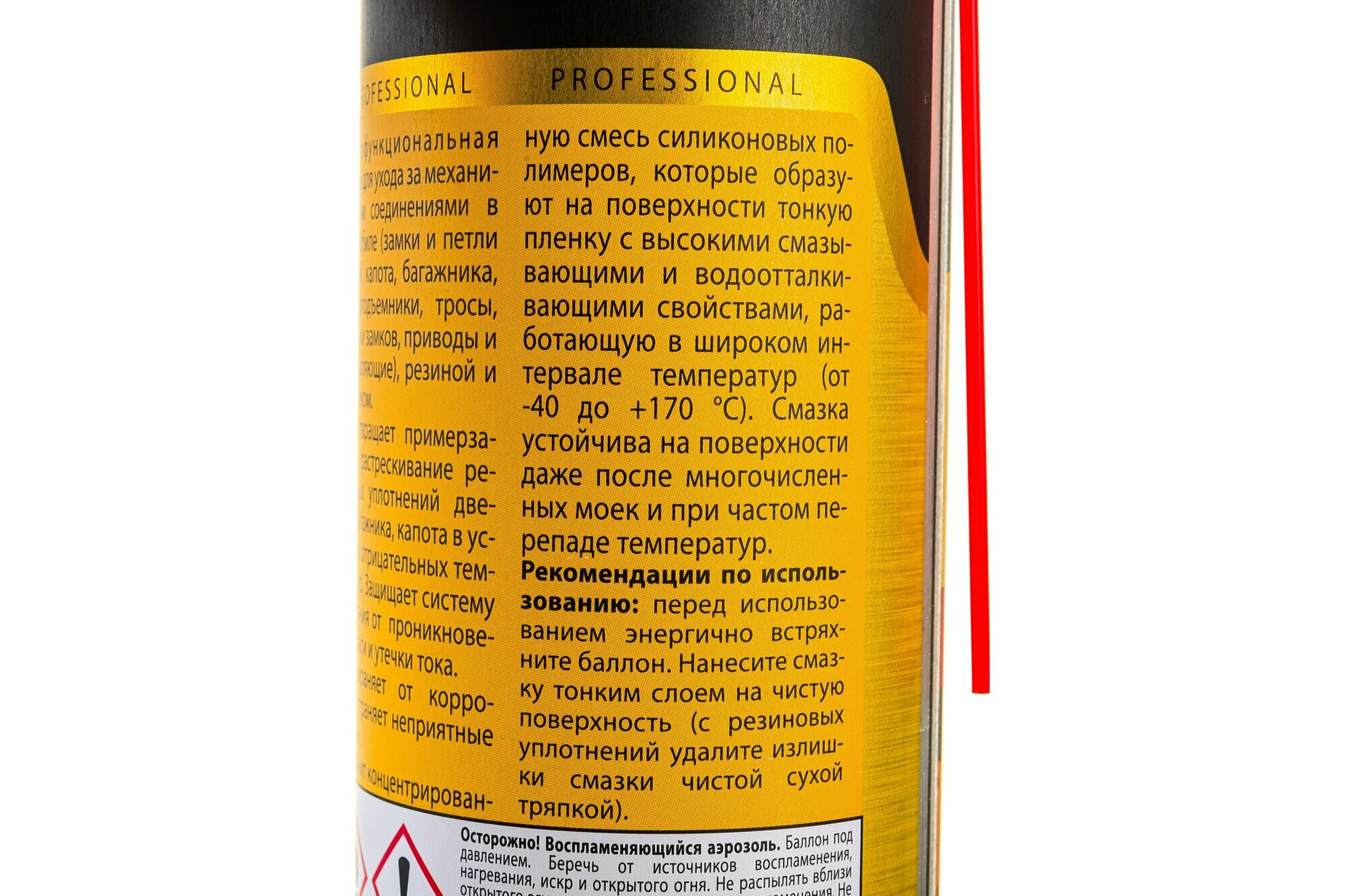 | Плюсы: | Большой баллончик, трубочка для удалённых мест, распыление в любом положении. Силикон остаётся, а не испаряется. |