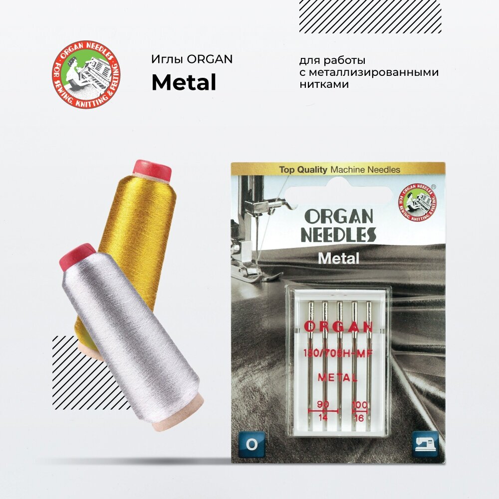 Иглы для швейной машины ORGAN для металлической нити, ассорти 5 шт, в блистере, №90-100 интересное: