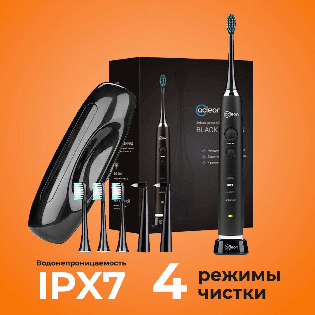 Купить Электрическая зубная щетка ACleon F36 черная/ультразвуковая с дорожным кейсом, режим отбеливания и массажа для чувствительных зубов, десен,5 насадок