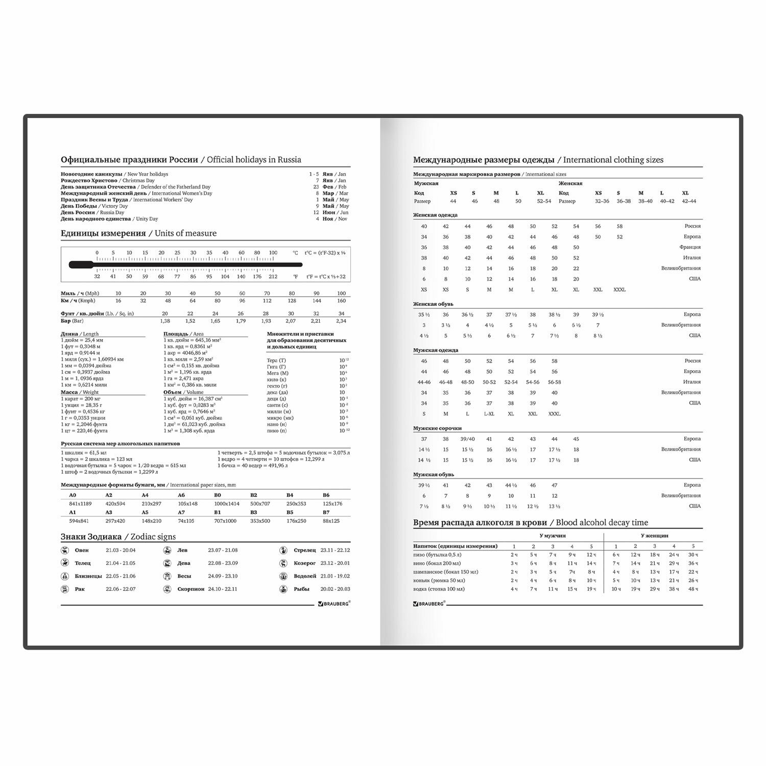 эргономичный приятный на вид хорошее качество Недостатки: недостатков не обнаружил отличный ежедневник имеет в себе много полезной информации такой как время распада алкоголя в крови автомобильные коды регионов коды автоматической междугородней и международной связи также питание и расход калорий единицы измерения имею такой дома и на работе |
