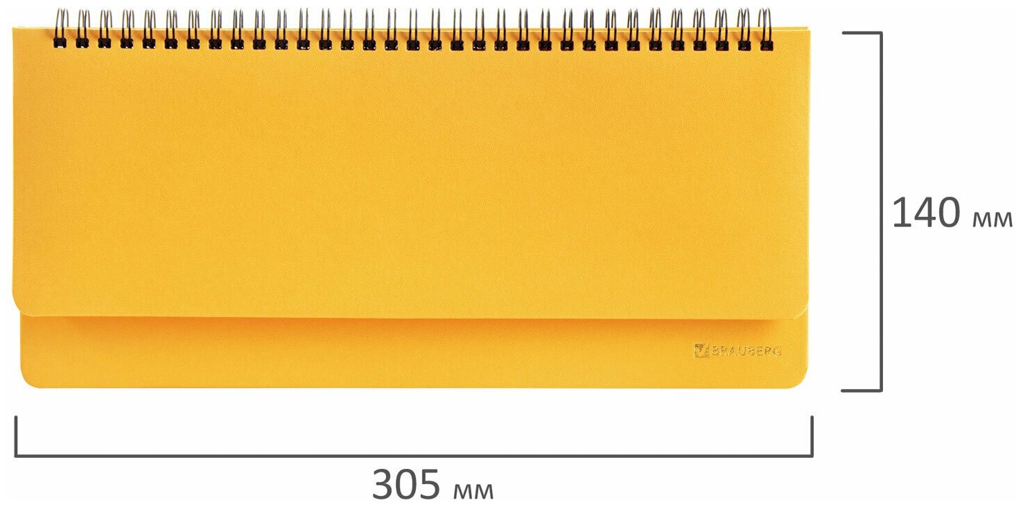 Планинг (ежедневник-планер), записная книжка, блокнот недатированный настольный горизонтальный (305x140 мм) Brauberg балакрон, 60 л., желтый, 111696