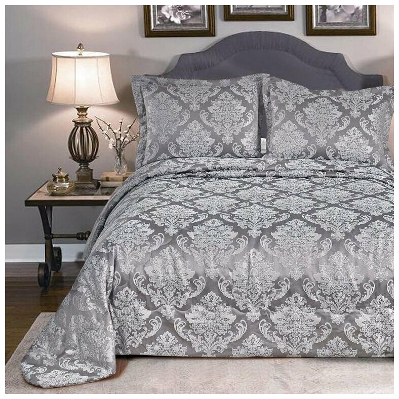 Покрывало Cleo 240х260, Евро макси, На кровать, диван, Для пляжа, пикника, С наволочками 50х70 2 шт., Жаккард, Цвет серый, 240/007-AG