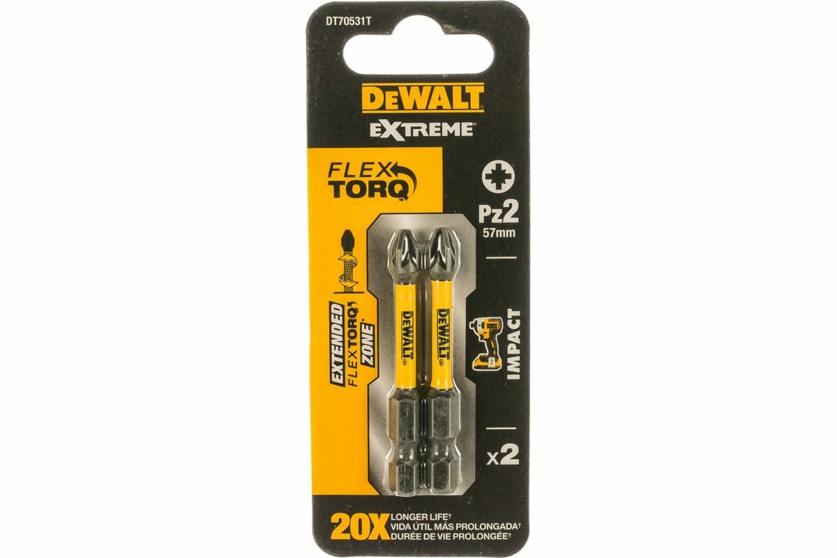 Биты ударные DEWALT IMPACT DT70531T, Torsion Pz2, 57 мм, 2 шт.