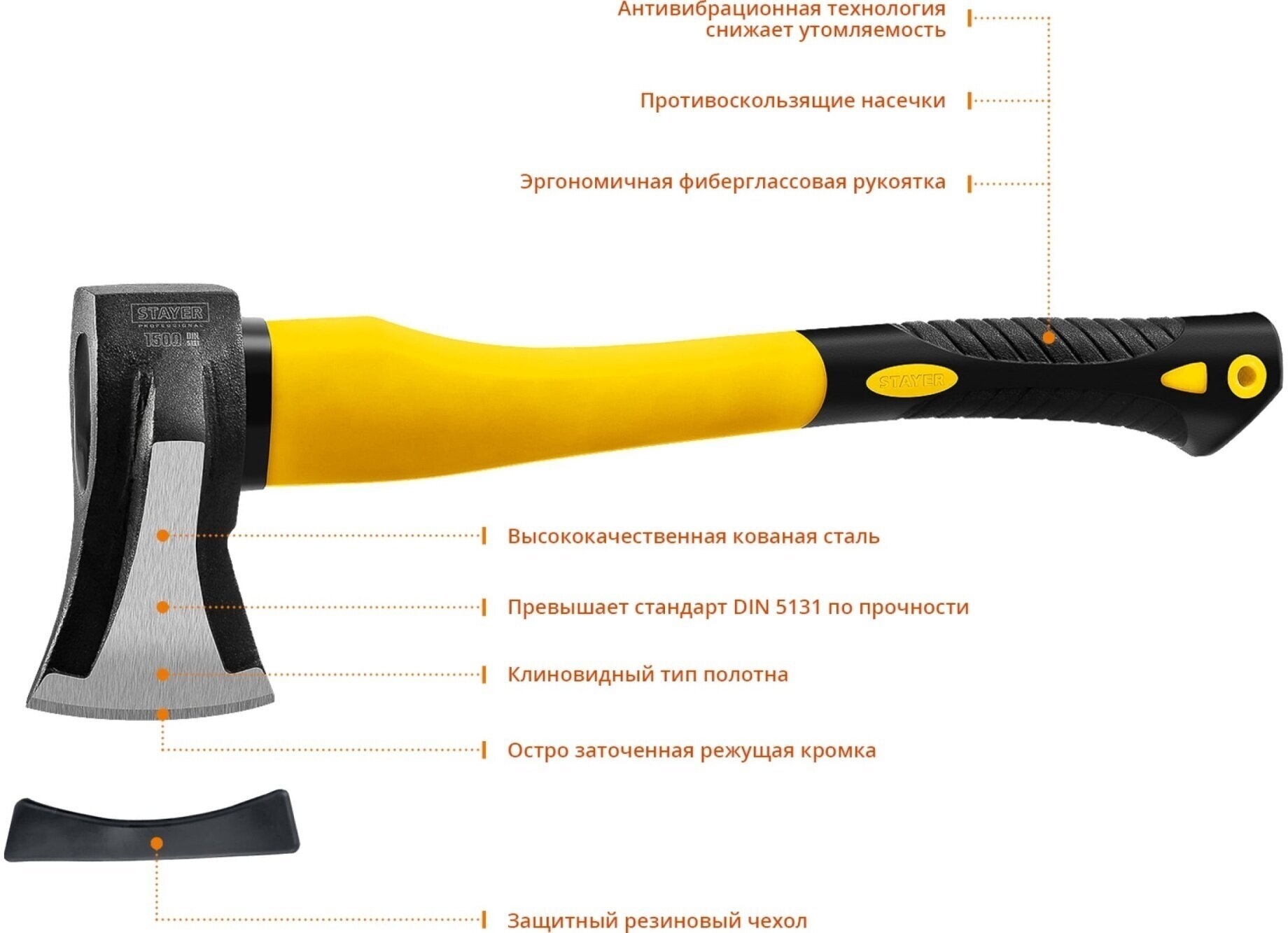Топор STAYER FIBERGLASS 1,5 кг 380 мм (голова 1 кг)